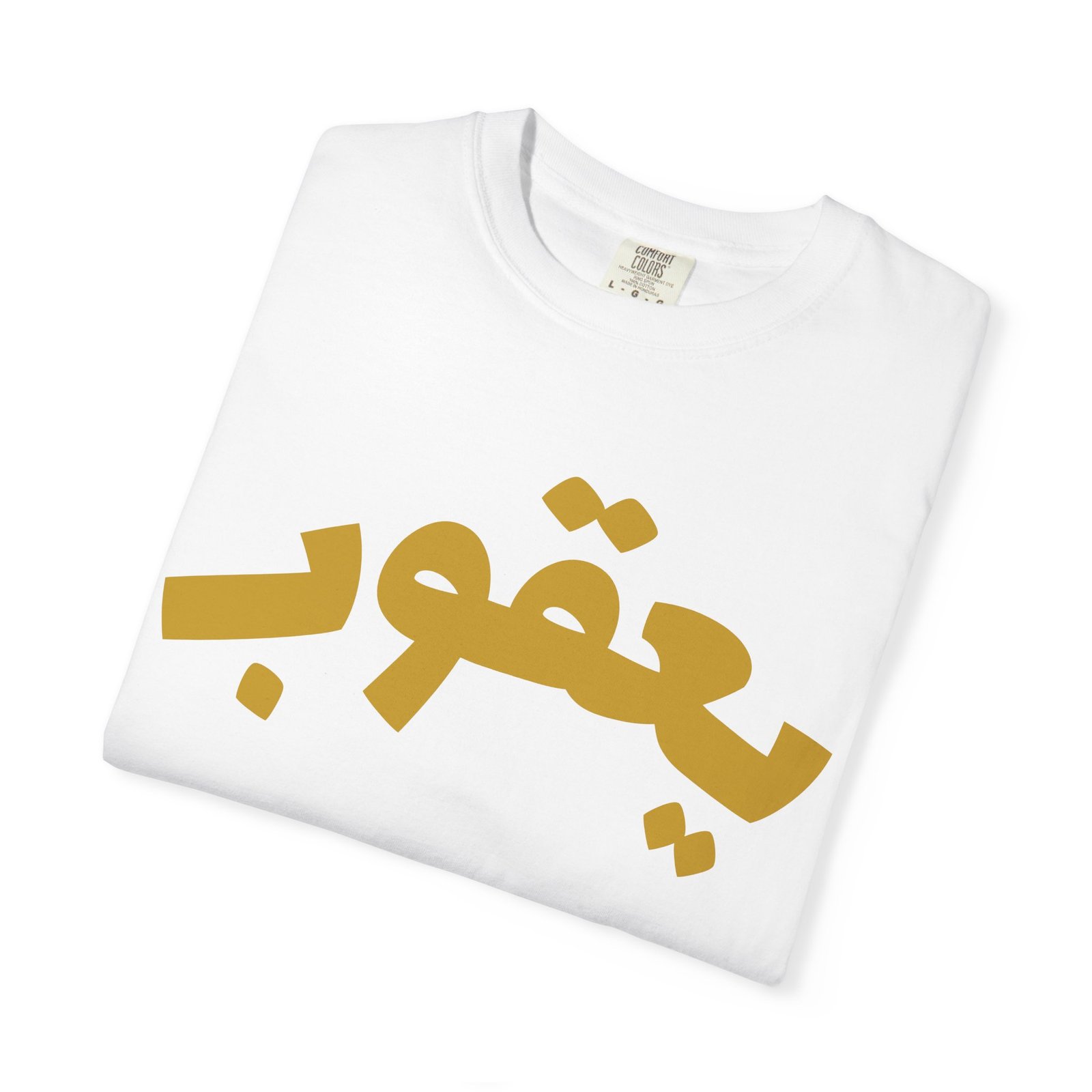 A soft, garment-dyed tee with a bold, warm-gold Arabic script across the chest and back that reads a single name. The heavyweight cotton feels substantial yet broken-in thanks to post-construction dyeing, so the color and texture soften with every wash. Relaxed and roomy, it drapes like a lived-in favorite — great for layering over a long-sleeve or wearing on its own. The tubular knit and double-needle stitching give it a clean, durable finish that holds up to everyday wear. Whether you’re honoring a name or sharing a quiet cultural statement, this shirt blends comfort and presence without shouting. It’s made to move with you — from slow coffee Saturdays to neighborhood strolls and casual meetups with friends.