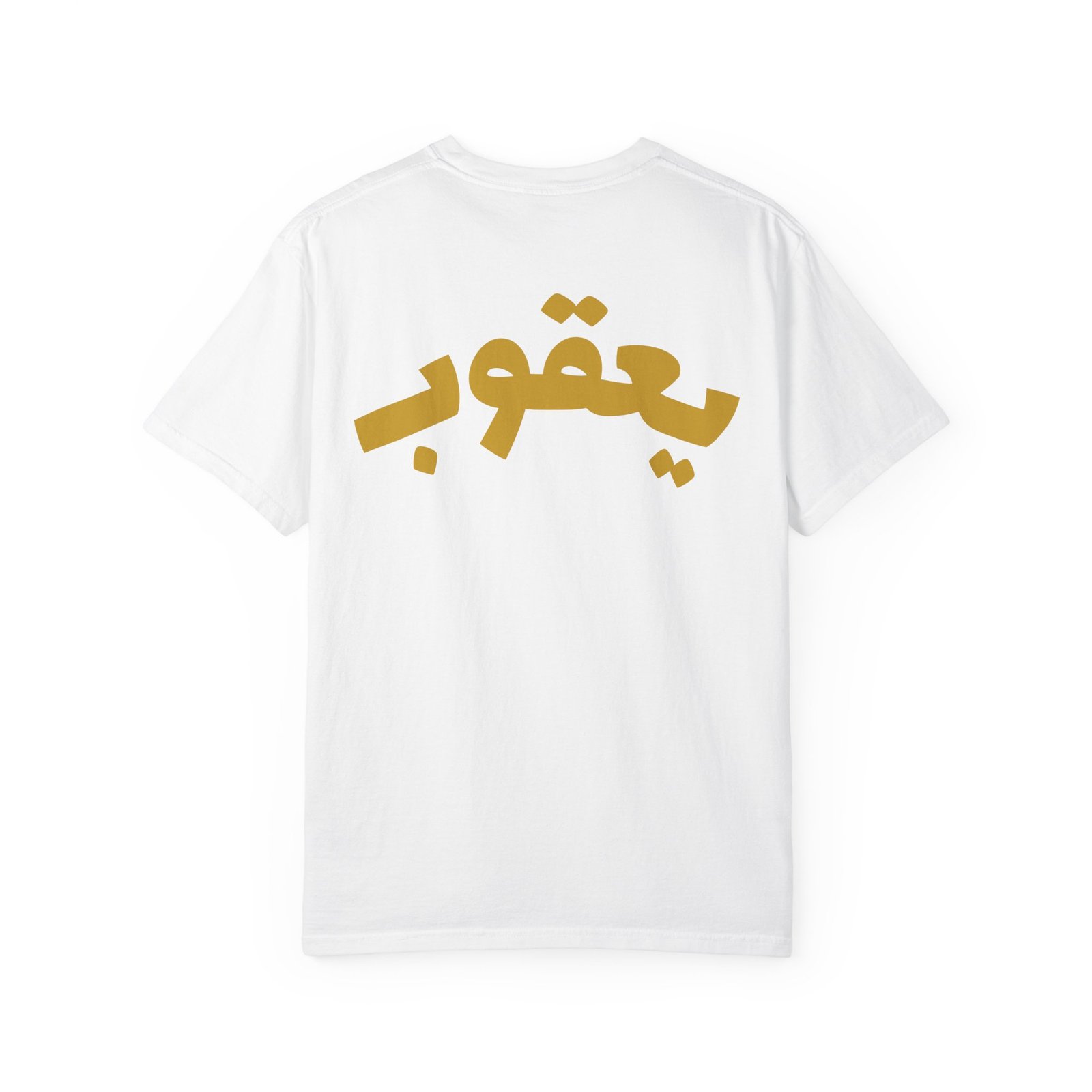 Be the first to review “Arabic Name Tee — “Yaʿqūb” Gold Script T-Shirt”