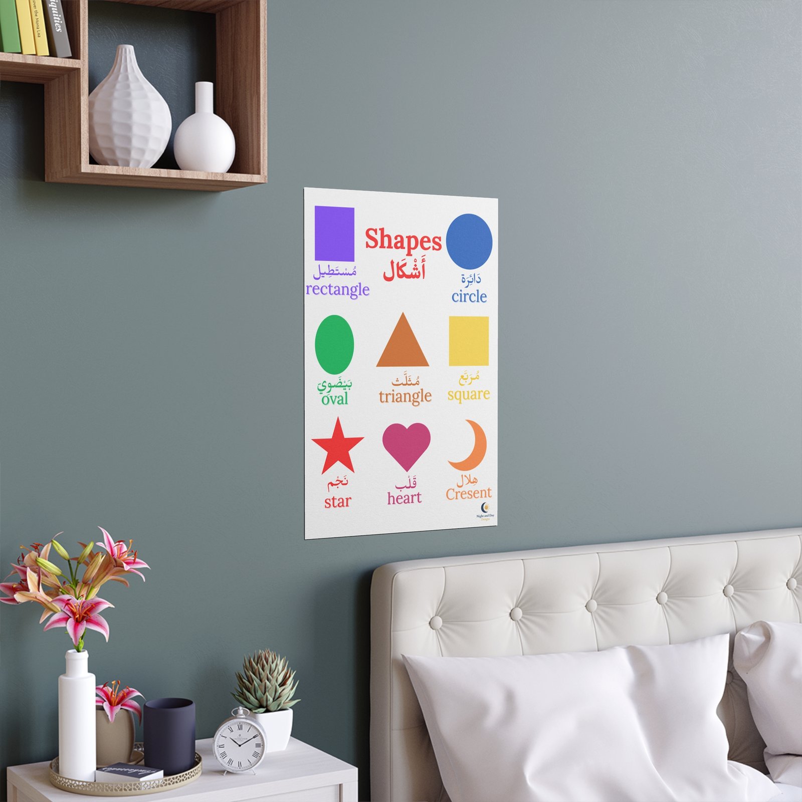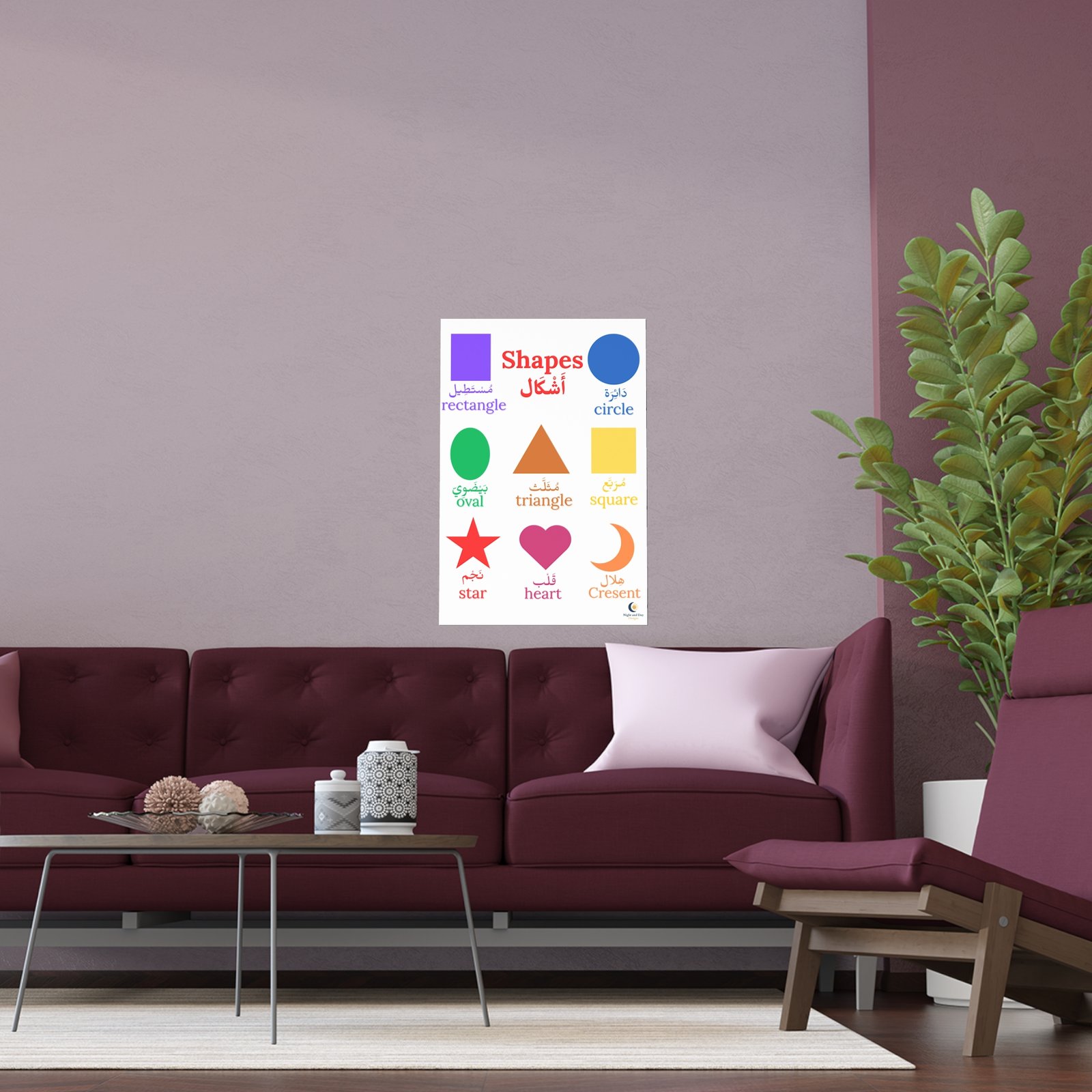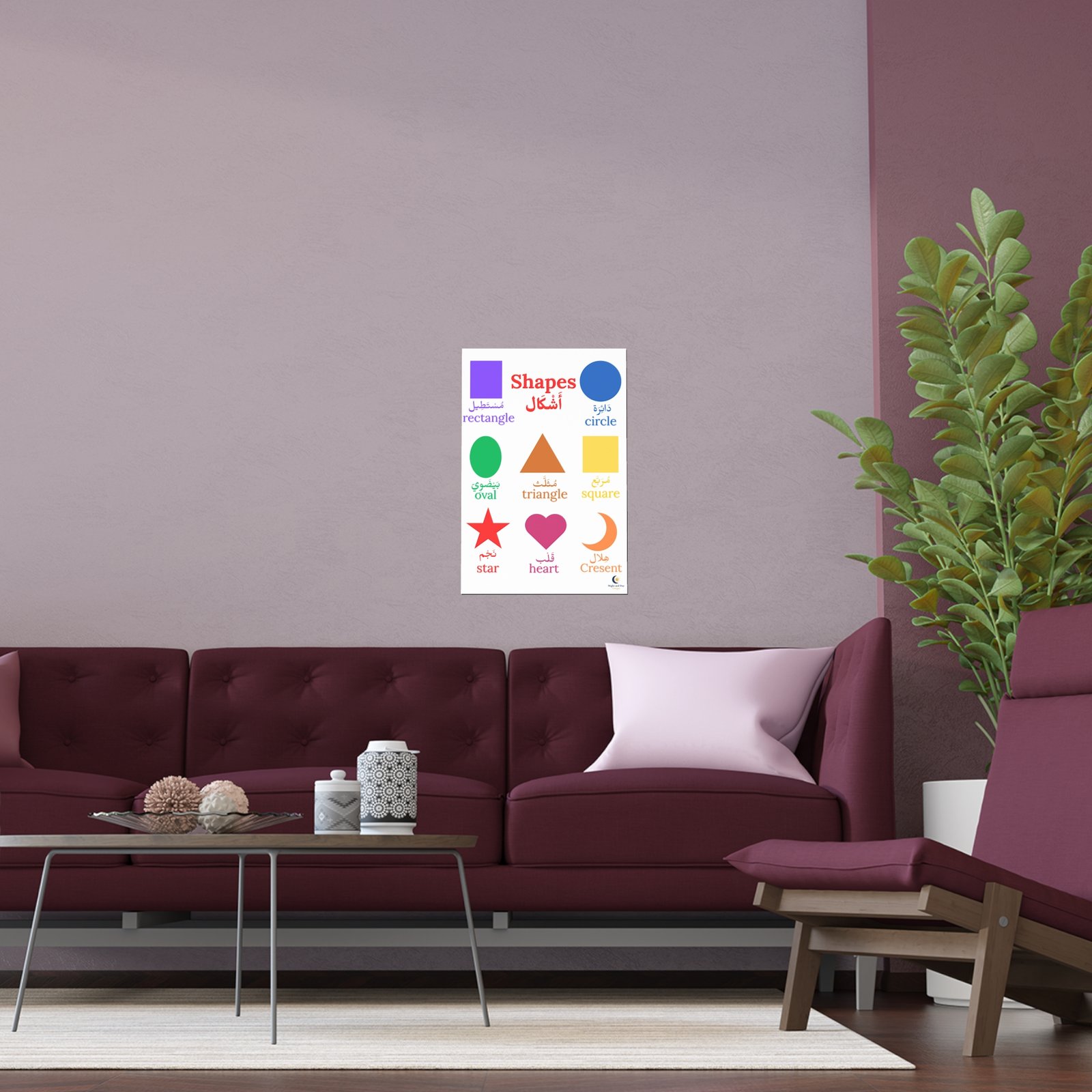 Shapes Poster – Bilingual English & Arabic Learning Wall Art for Muslim Homeschool Families (Indoor/Outdoor Silk Finish)