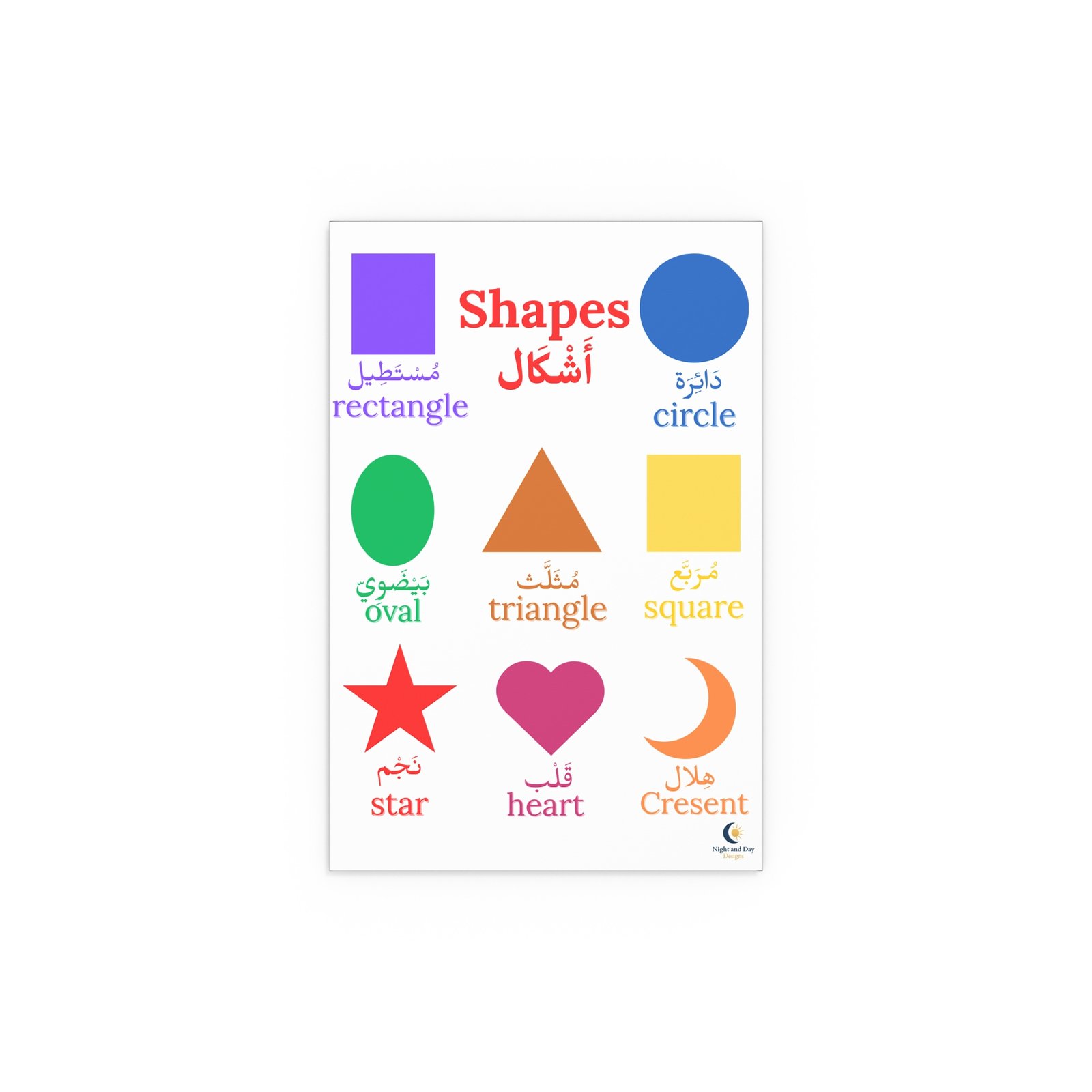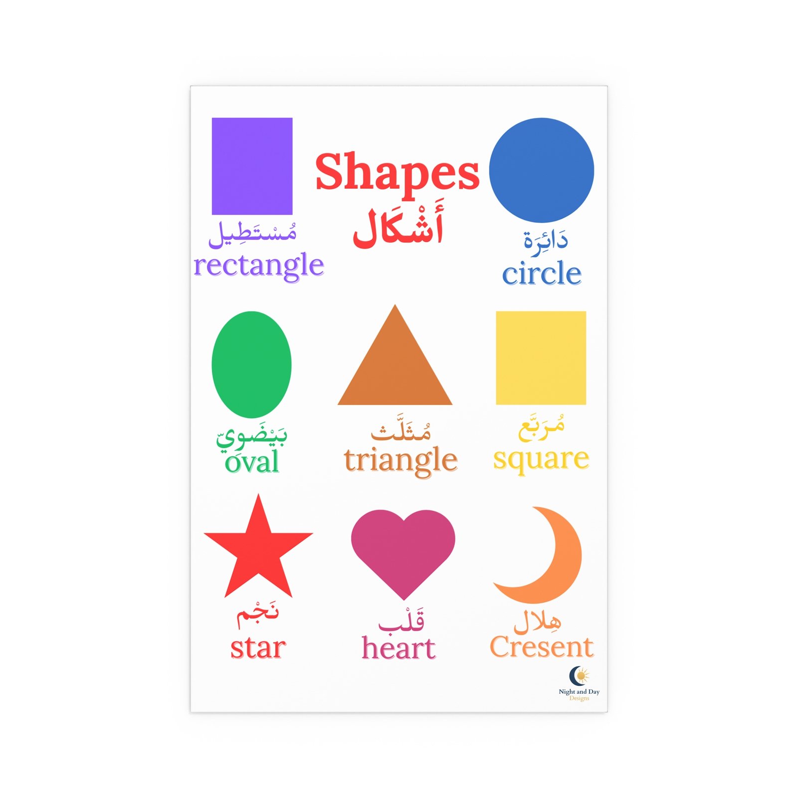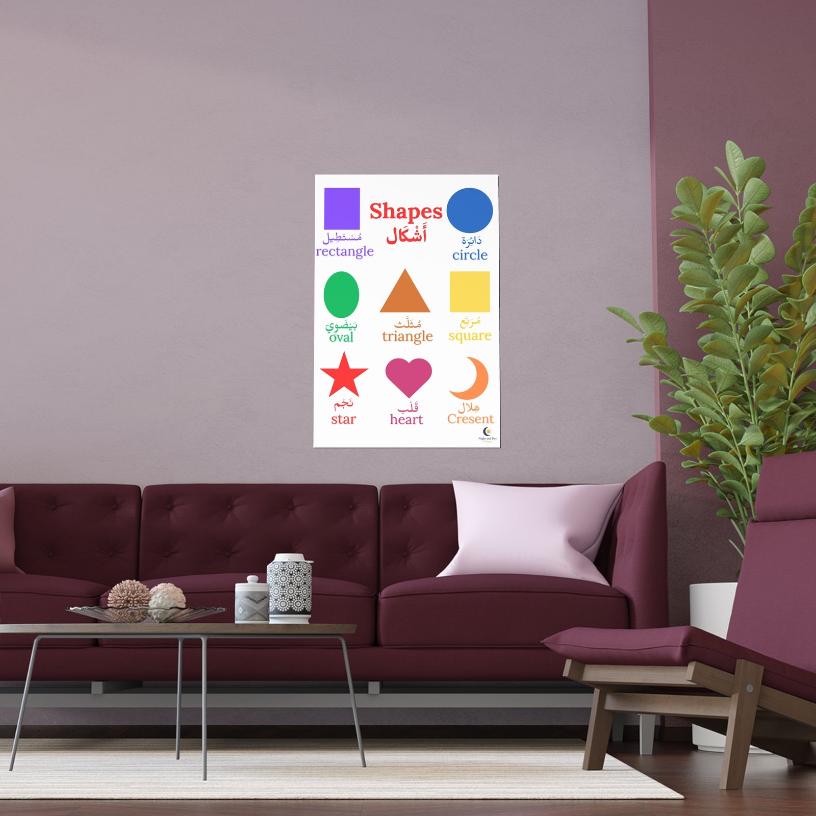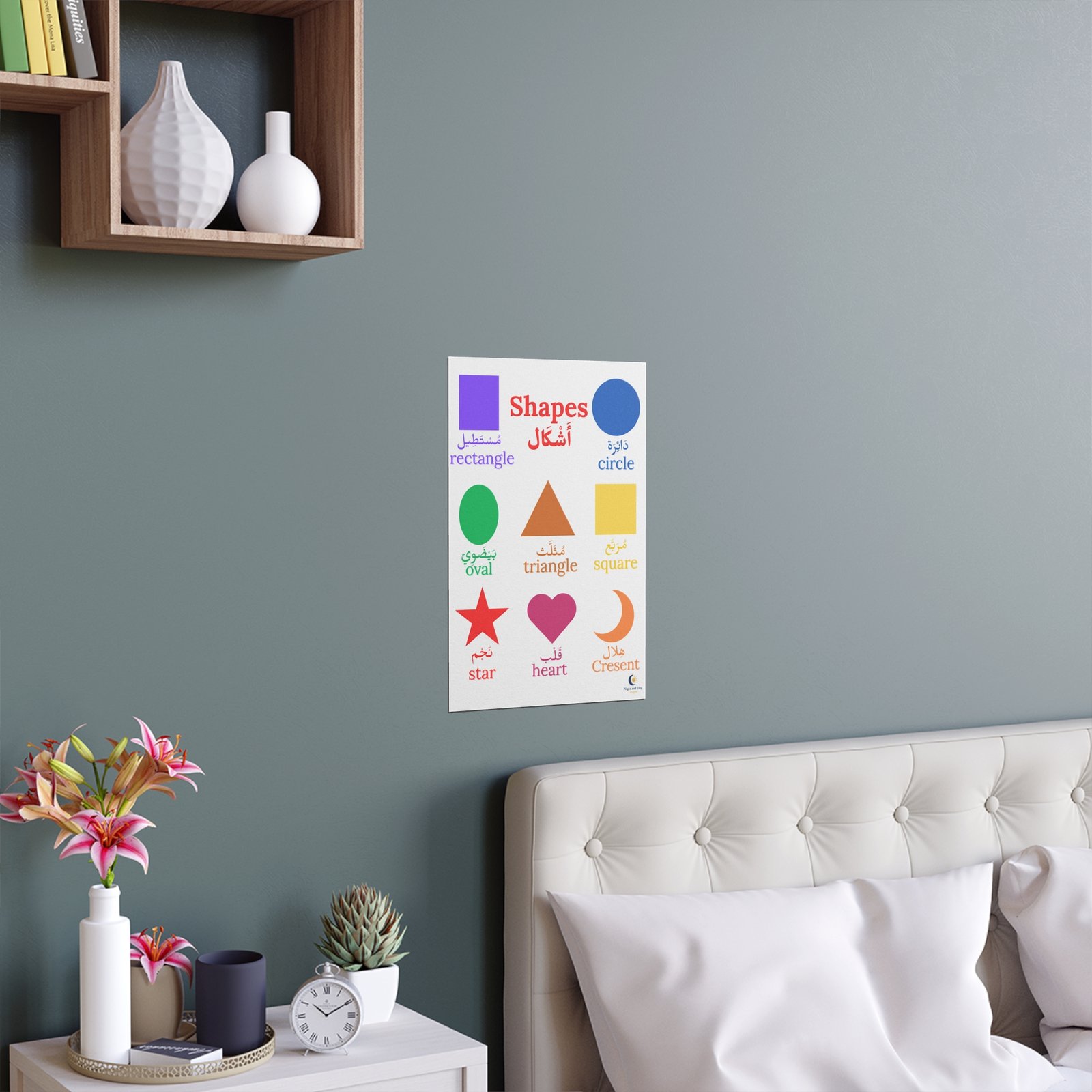 Shapes Poster – Bilingual English & Arabic Learning Wall Art for Muslim Homeschool Families (Indoor/Outdoor Silk Finish)